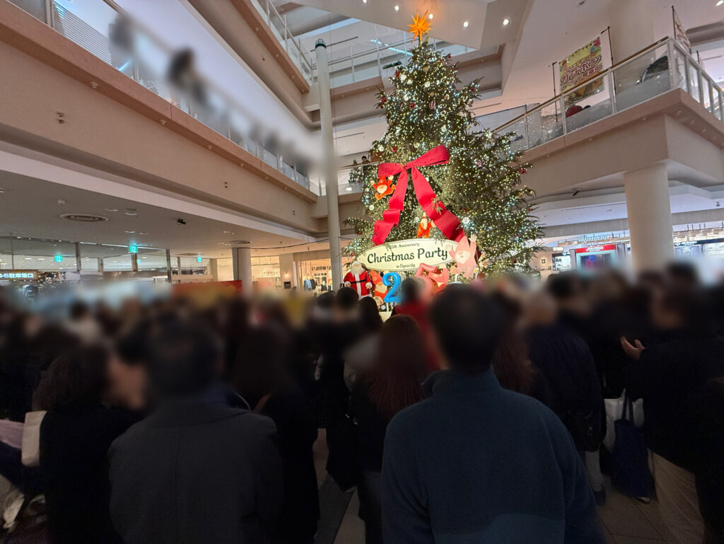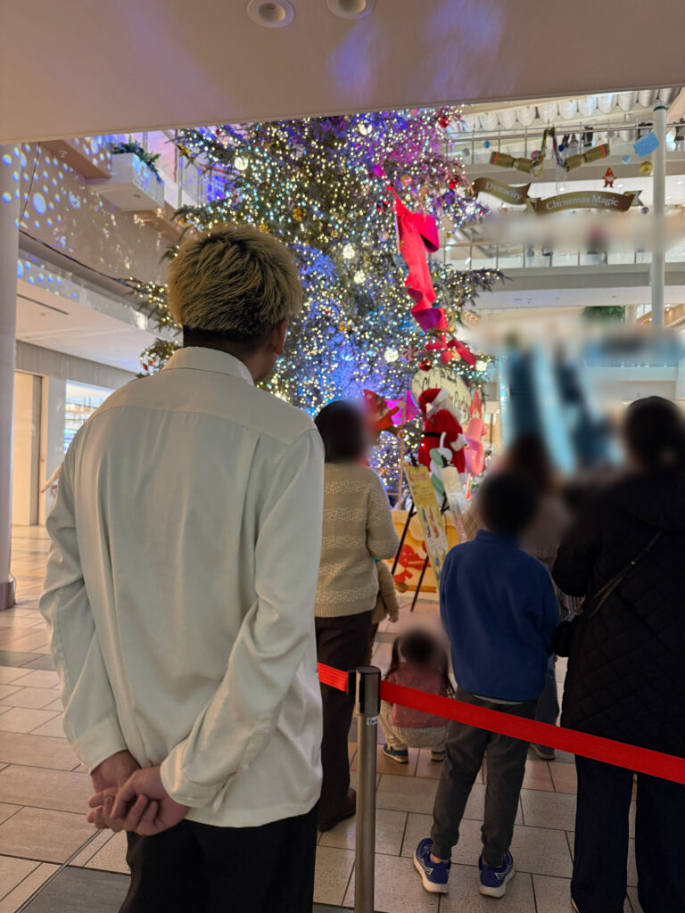 クリスマスツリーを使ってイルミネーションショーが行われた後に、